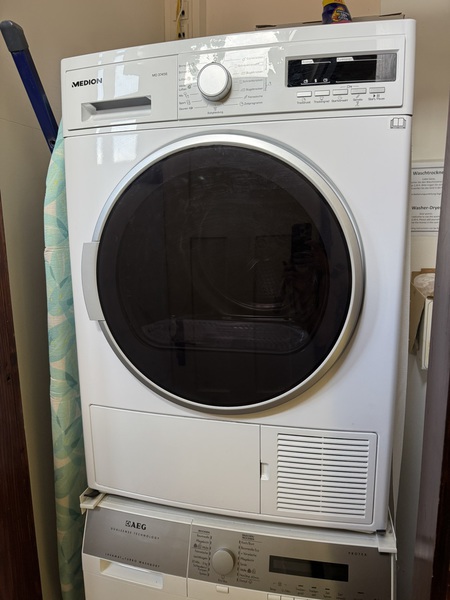 Auf dem Plateau vor den Wohnungen befindet sich eine Waschmaschine und ein Trockner, die mit eigenem Waschmittel verwendet werden können.