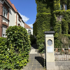 Die Mülltonnen finden Sie, indem Sie beim Verlassen des Hauses nach rechts gehen. Dort um die Ecke stehen die